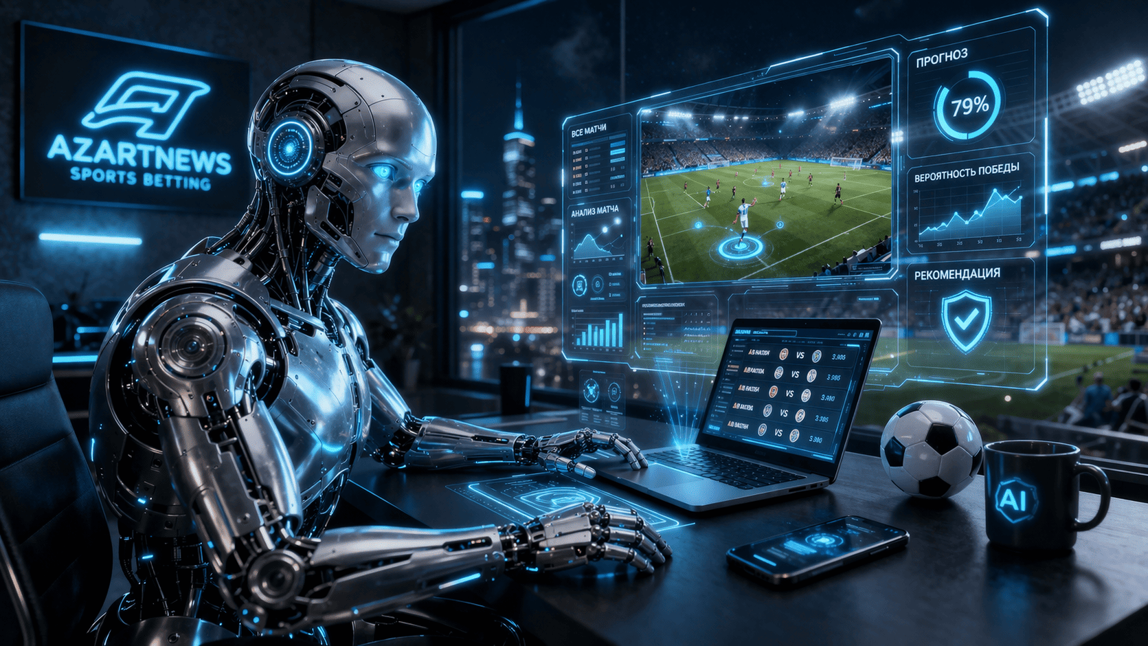 Искусственный интеллект — это не просто тренд, а основа будущего аналитики. AzartNews — это полноценный портал о ставках на спорт, где AI анализирует абсолютно все доступные матчи.