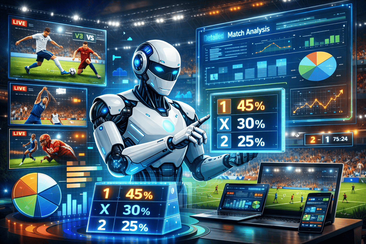 Мы — один из первых проектов в России, который качественно реализовал спортивные прогнозы на основе искусственного интеллекта. Каждый день на нашем сайте появляются сотни спортивных событий, где вы можете ознакомиться с подробной аналитикой, детальным обзором матчей и рекомендациями от AI по ставкам. Вся информация на сайте доступна бесплатно и создана исключительно для вашего удобства и более осознанного выбора.